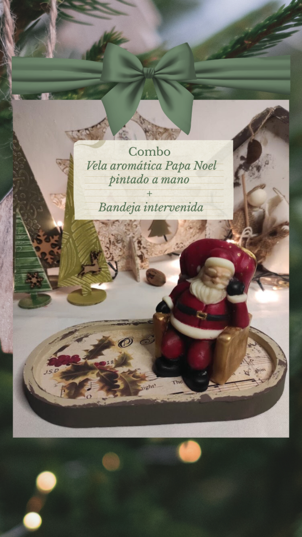 Vela aromática pintada a mano en forma de Papa Noel + Bandeja intervenida.